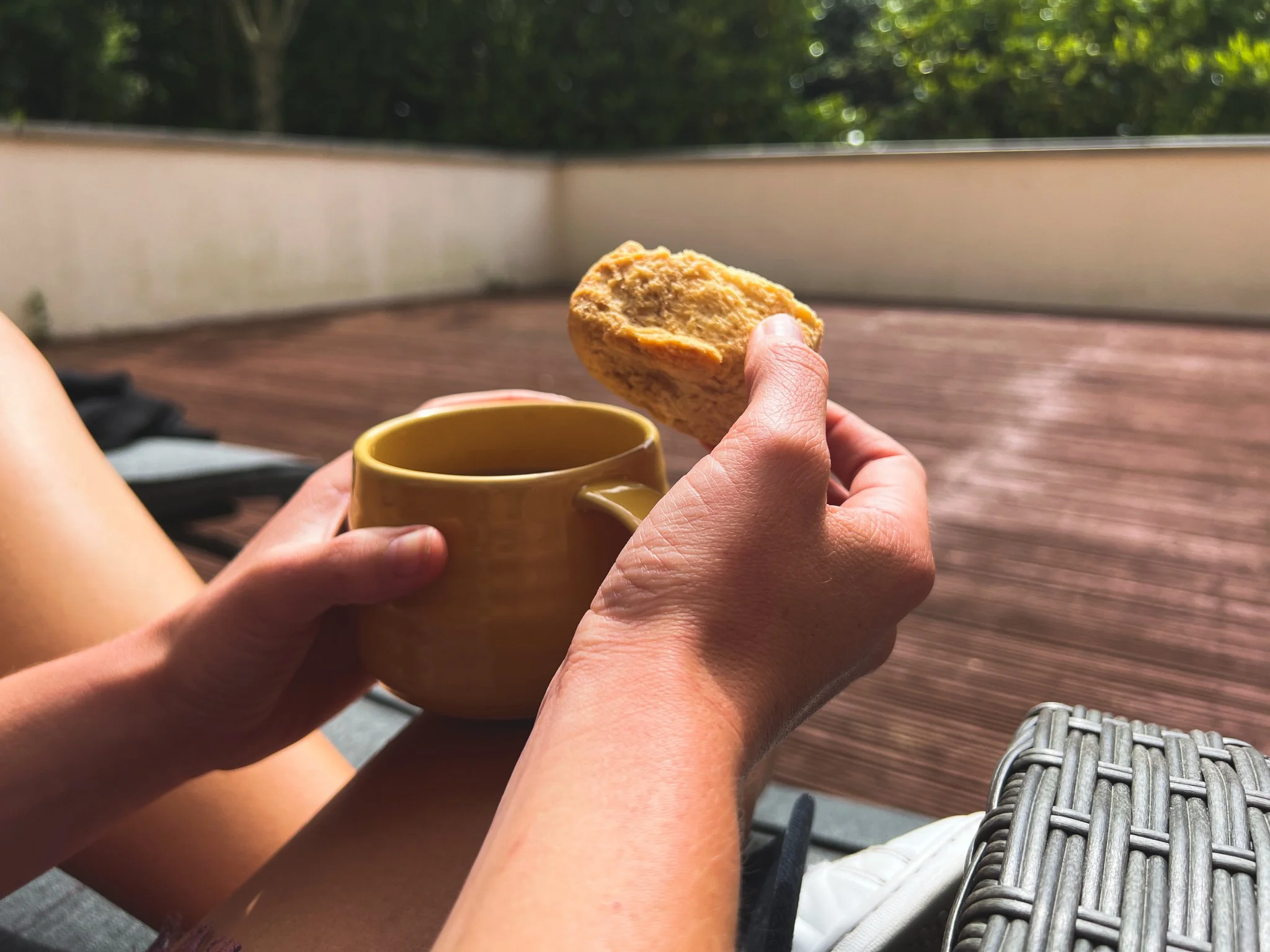 Now, when I have my coffee in the morning and dip my ‘Oumas’ in it (Ouma rusks are like a hard biscuit that you dunk in warm drinks to soften it for eating), I feel a bit like I am at home on our porch, listening to the rosy-faced lovebirds sing, sunshine on my face and the warmth of the day starting to settle in around me.